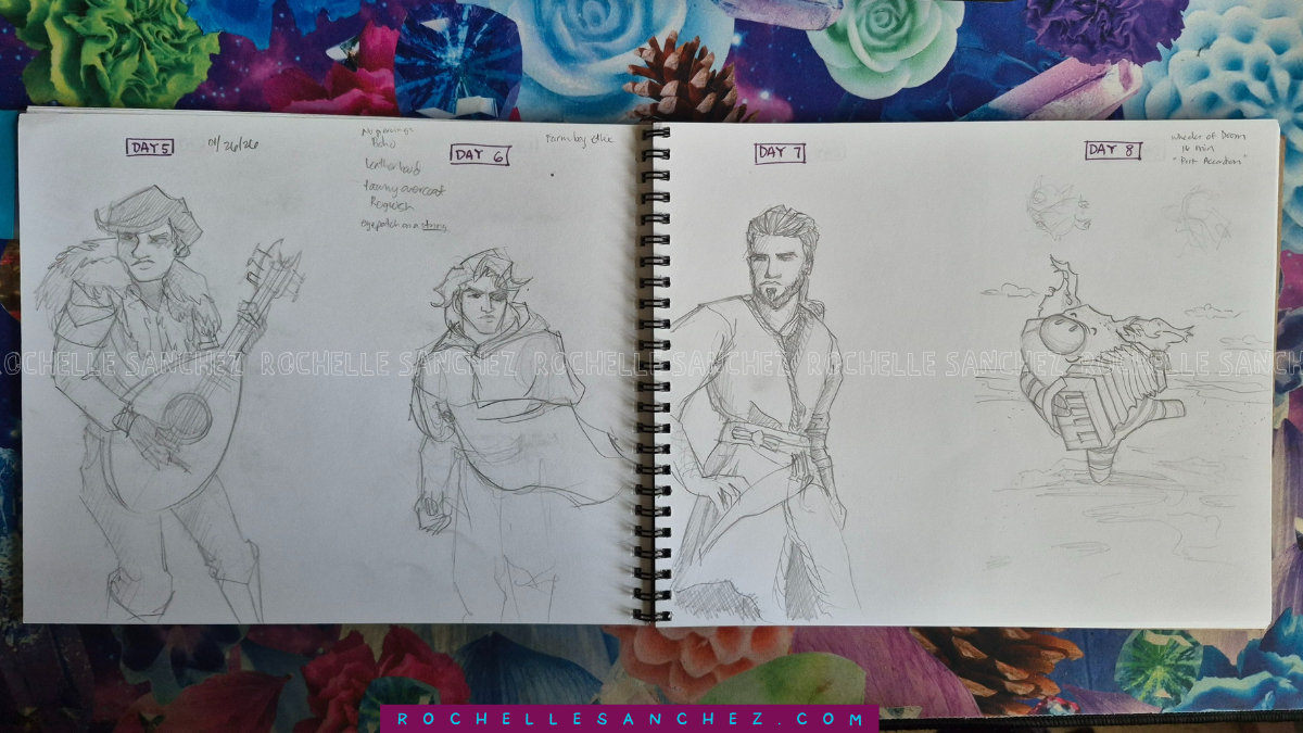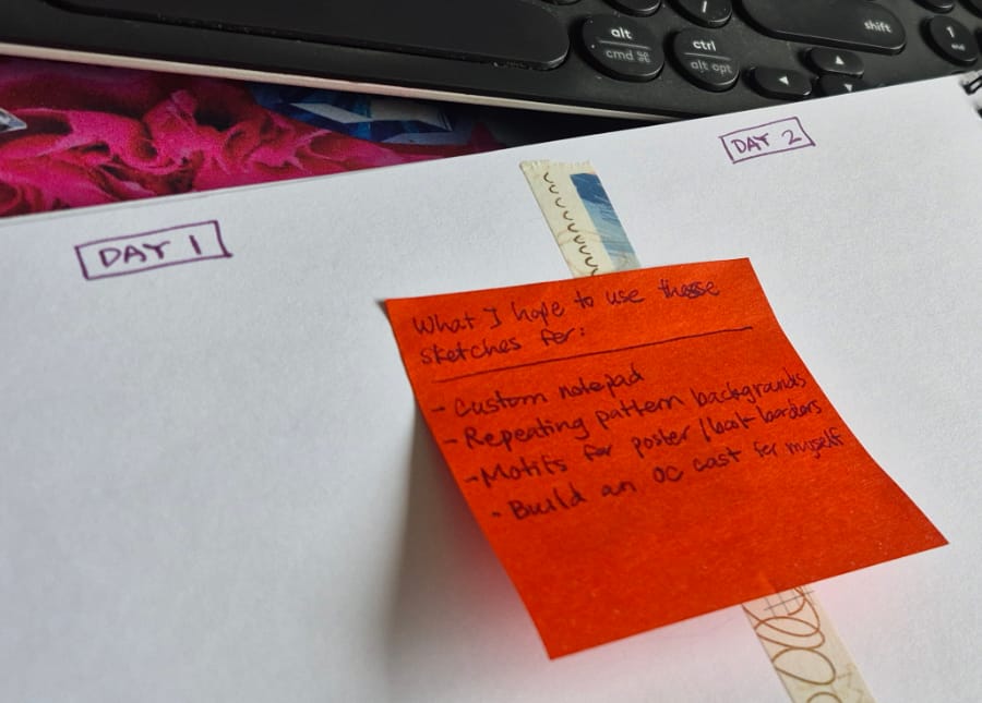 I made myself a little sticky note for what I want to use the sketches for (hello my forever project manager brain – how to UTILIZE EVERYTHING), but so far I haven't had to refer to it.